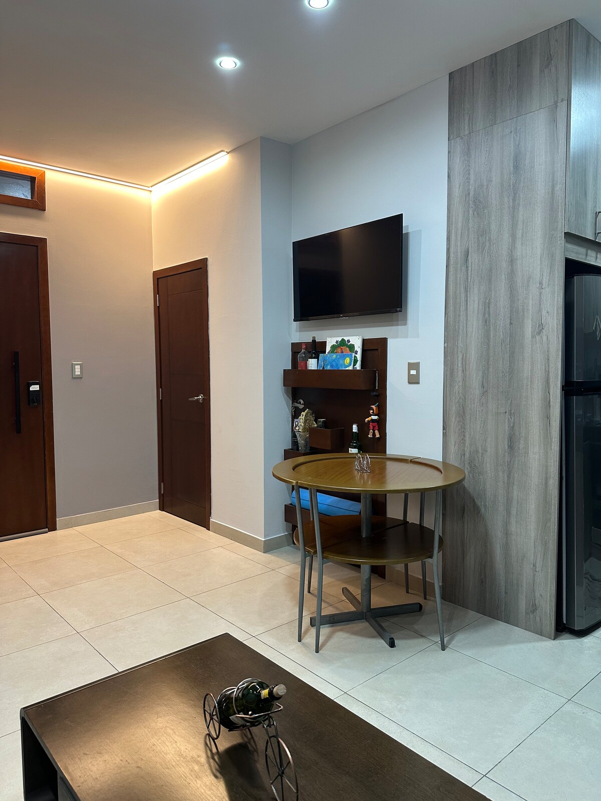 Suite con estacionamiento diagonal al edificio, es un espacio cerrado con seguridad 24/7. La Suite tiene un diseño moderno; ha sido cuidadosamente concebida para optimizar cada metro cuadrado, incorporando materiales de alta calidad y una paleta de colores sobria que transmite serenidad. Cada detalle ha sido pensado para brindar una experiencia de hospedaje cómoda, estética y memorable. Un lugar ideal para quienes aprecian el diseño y los pequeños detalles.