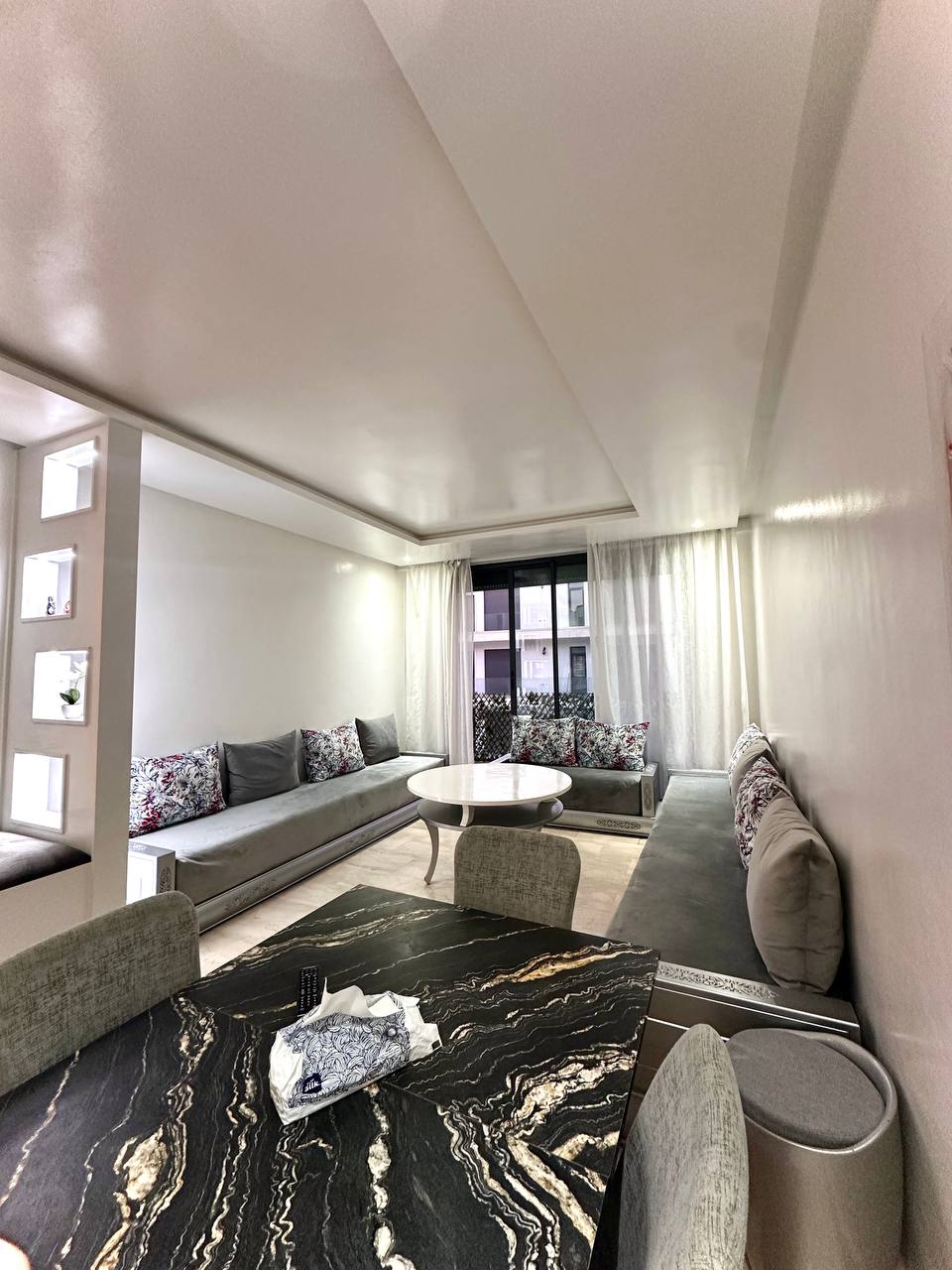 Welcome to our brand new flat located in the heart of Agadir, the vibrant central city of Morocco! This modern and stylish apartment is the perfect choice for your stay, offering convenience, comfort, and easy access to all that Agadir has to offer. As you step into this newly constructed flat, You will find everything u need at ur fingertips. One of the highlights of this flat is it’s unbeatable location in the center of Agadir. We offer high speed internet to stay connected with loved ones.
