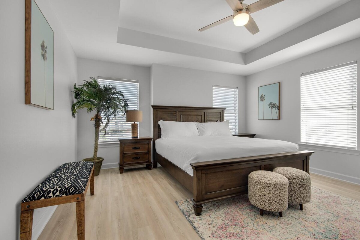 ✔ Directly Across From Public Beach ✔ Private Hot Tub ✔ All Dogs Welcome, Dog-Friendly Beach ✔️ 4 bedrooms, 4 baths, Sleeps 10 ✔️ Gulf-Facing Deck – Soak in the salt air and watch the waves roll in from an expansive deck with lounge seating. ✔️ Outdoor Oasis – Hang in your own shaded bar area under the house, complete with hot tub, cornhole, and comfy seating ✔️ Beach Gear, Linens & Soaps Included. ✔️ Outdoor Shower
