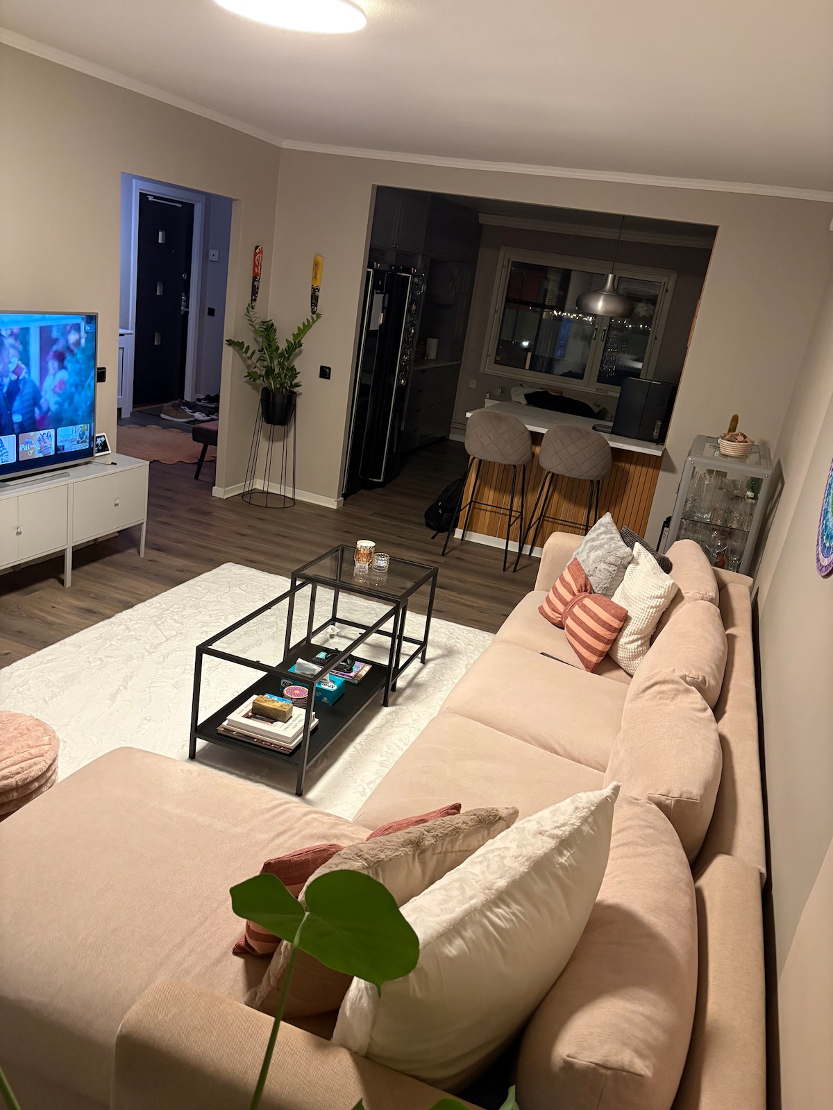 Newly refurbished penthouse apartment with very high standard. With a big enough living room to fit both a dining table and sofa this is an apartment designed for socializing. The bedroom is very cozy with an en-suite bathroom. The open fireplaces and 65" TV with Netflix built in makes this place ideal for simply chilling out and relaxing. In addition, the TV room has a custom built sofa that covers the entire floor of the room! Perfect for cuddles or nights in with friends.