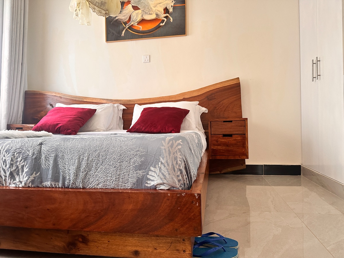 Adentrate en la cultura, donde las ricas tradiciones de Uganda se encuentran con la comodidad moderna. Este alojamiento de 2 dormitorios completamente amueblado tiene capacidad para 5 personas más un bebé, con dos camas king, una cama de una plaza y una cuna. La decoración artesanal y los tejidos vibrantes crean un ambiente cálido y auténtico. Explorá los sitios culturales cercanos o relajate en los espacios acogedores diseñados para la conexión y la comodidad.