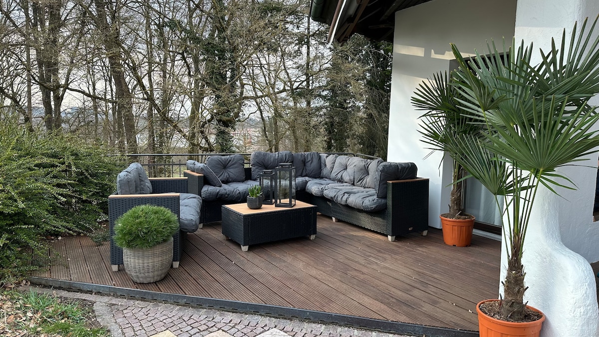 El moderno apartamento luminoso (90 m²) se encuentra en el centro de Bernstadt. Una panadería con cafetería para desayunar está justo enfrente de la casa. Puedes conducir a Ulm y a la ciudad de la ciencia en 15 minutos en coche, y 15 minutos a Legoland. La gran terraza cubierta al suroeste permite una Vista panorámica de la Jura de Suabia. La cocina moderna con isla de cocina está totalmente equipada. Estación de carga eléctrica en el estacionamiento justo al lado de la casa (abajo)