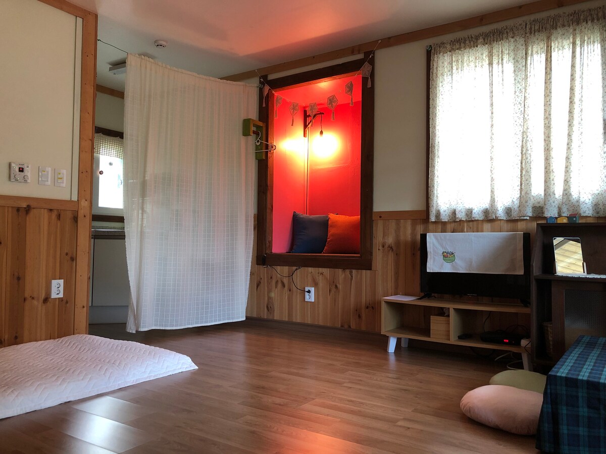 Sarangbang: casa privada, proyector de luz, spa interior para 2-3 personas, cocina, barbacoa y chimenea