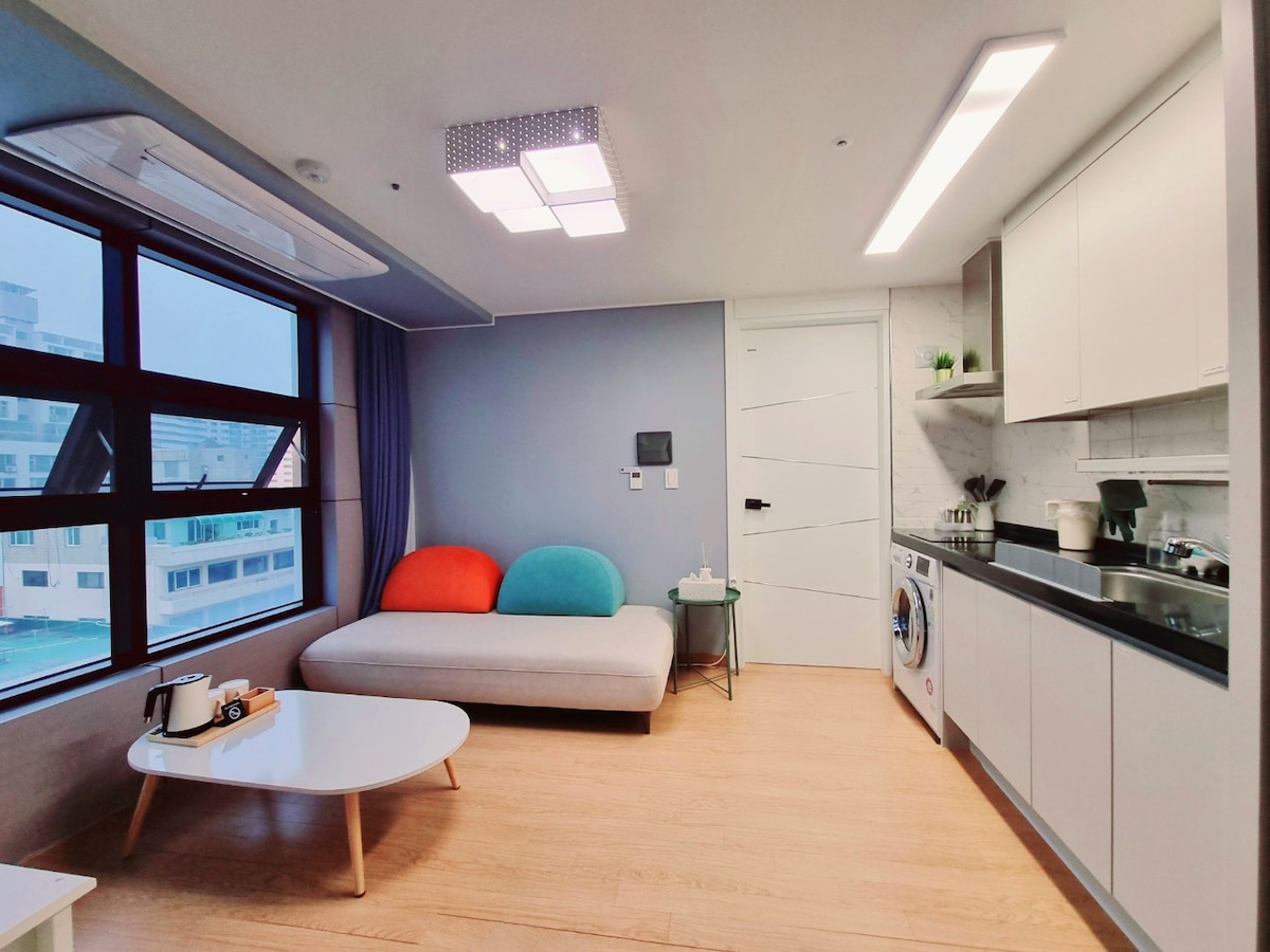 Instalaciones de alojamiento legales aprobadas por la oficina de la antigua ciudad, que se completaron en junio de♦️ 2020 es. Está en la♦️ planta superior (13ª planta) y hay una terraza abierta con vistas al mar. Si quieres ver más allá, puedes disfrutar de las hermosas vistas al mar del puente Gwangan desde la azotea y, si sales al mar (1 minuto), puedes ver el maravilloso puente Gwangan. Se permite fumar en la terraza♦️ abierta. Hay una consola de juegos♦️ retro. Si viajas con tu♦️ pareja, amigos, familia y mascotas, ¡es el alojamiento más rentable!