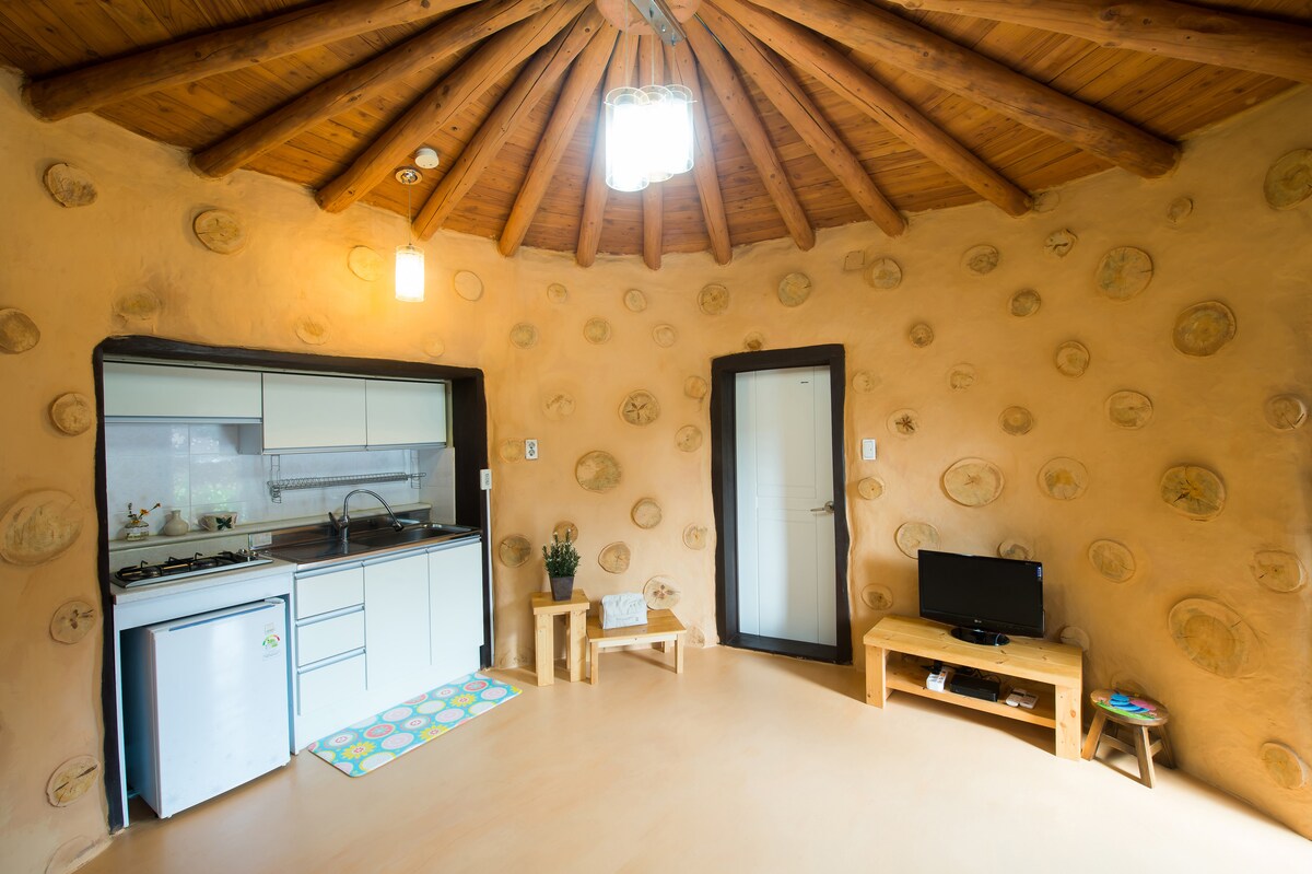 Hola. Aquí está Daegwallyeong Redclay Pension en Gangneung. Es una casa de tierra sana construida solo con arcilla y pino. * Este es un estudio, un tipo coreano Traditionall Ondol. * Estándar 2 adultos, hasta 4 personas. Si el número de personas supera el estándar, se aplica un cargo adicional de 10.000 won/día por persona (pago in situ, gratuito durante 12 meses o menos).