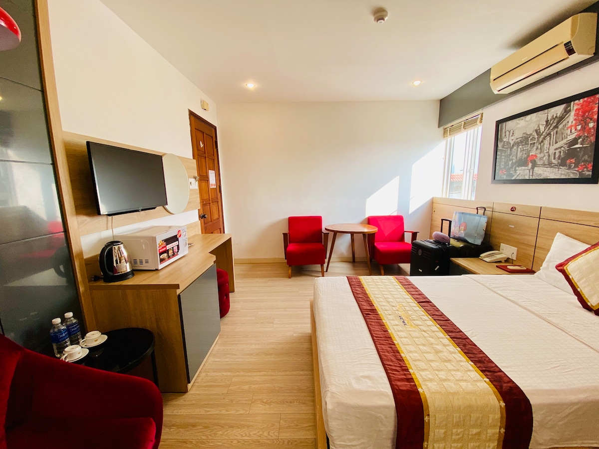Sunny Beach Deluxe Double là căn phòng tuyệt vời cho kỳ nghỉ của bạn tại thành phố biển Đà Nẵng xinh đẹp. Phòng được thiết kế bài bản, tiện ích, nội thất cao cấp, bồn tắm nước nóng, tủ áo quần, bàn làm việc, với chiếc ghế Sofa thư giản bên cạnh cửa sổ,…Chắc chắn bạn sẽ tận hưởng được không khí trong lành, cảnh quan qua ô cửa sổ. Rất hân hạnh được đón tiếp quý du khách!