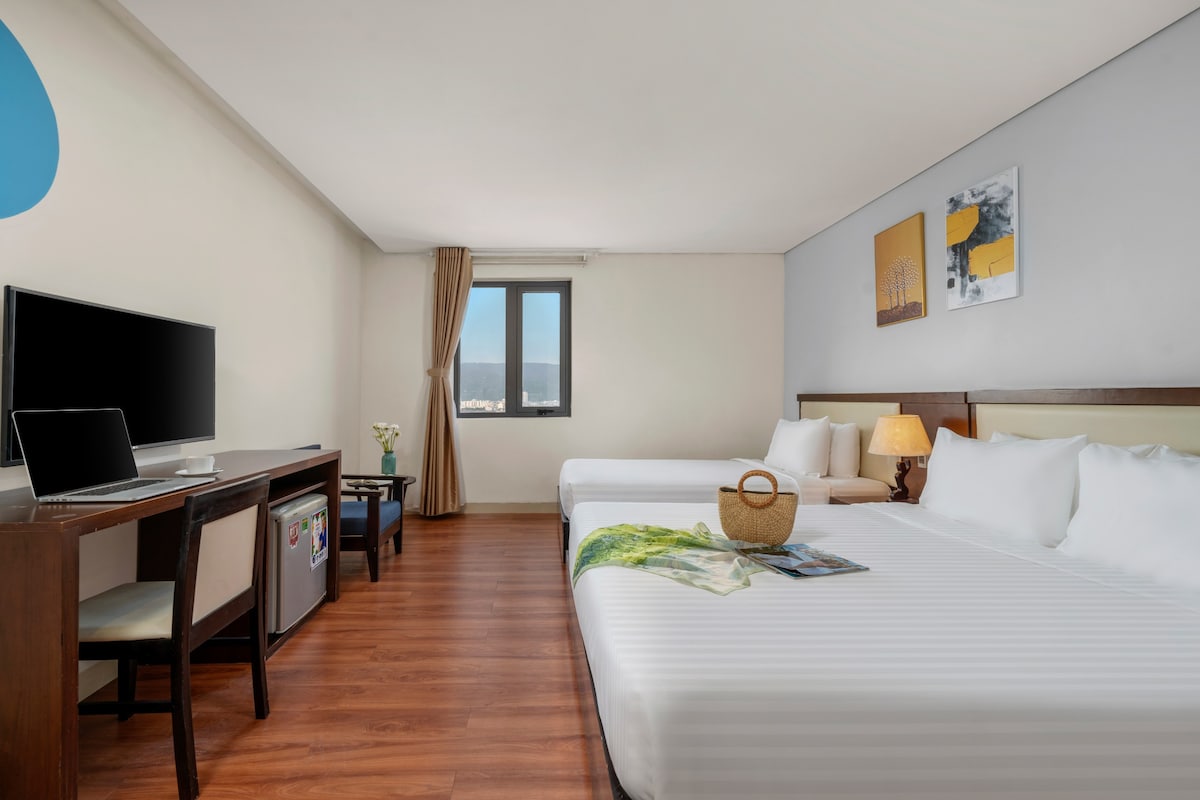 Experience enchantment in our river view hotel room with a private balcony, where you'll witness the captivating Dragon Bridge exhale majestic flames. Unwind in modern luxury as you're treated to a front-row seat of nature's beauty and architectural marvels.
