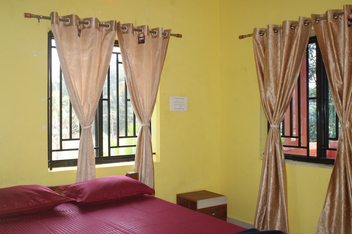 Bienvenido a nuestro humilde paraíso, enclavado en una exuberante vegetación, a solo 10 minutos a pie de la famosa playa de Kudle, a 20 minutos de la playa de Om y a 30 minutos de Gokarn. Nuestra casa está ubicada detrás de la playa, rodeada de campos de arroz. Si te gusta la paz y la naturaleza, cerca de cualquier instalación en la playa, te relajarás en un ambiente sereno, con el canto de los pájaros. Tenemos un estacionamiento pago donde podés estacionar de forma segura (150 rps por auto). No tenemos wifi, pero la conectividad de red es muy buena.