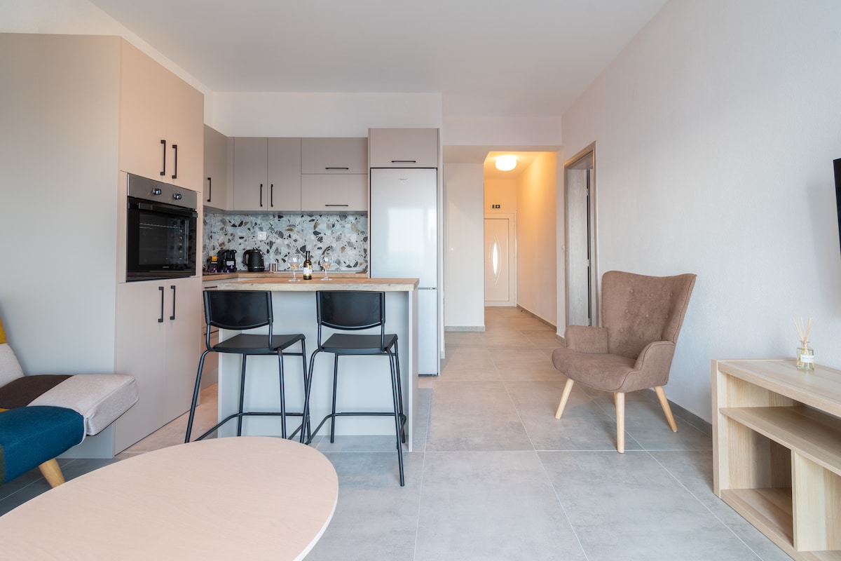¡Elegante y cómodo apartamento de 70 m2, totalmente equipado! ¡Ideal para cualquier persona que disfrute de la calidez de la madera, la vista al mar y la natación! A 10 minutos del aeropuerto de Salónica y a 30 minutos de la ciudad. El apartamento combina una ubicación perfecta en la playa, diseño interior y fácil acceso a la ciudad. En el barrio puedes encontrar chiringuitos, supermercados, gimnasios, tabernas, cafeterías y muchas otras cosas que hacer durante tu visita. ¡Prueba un viaje en ferry desde Perea a la ciudad!