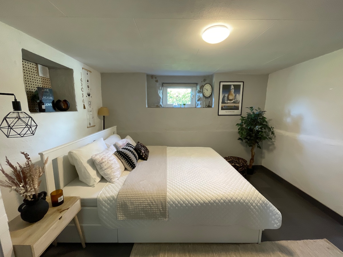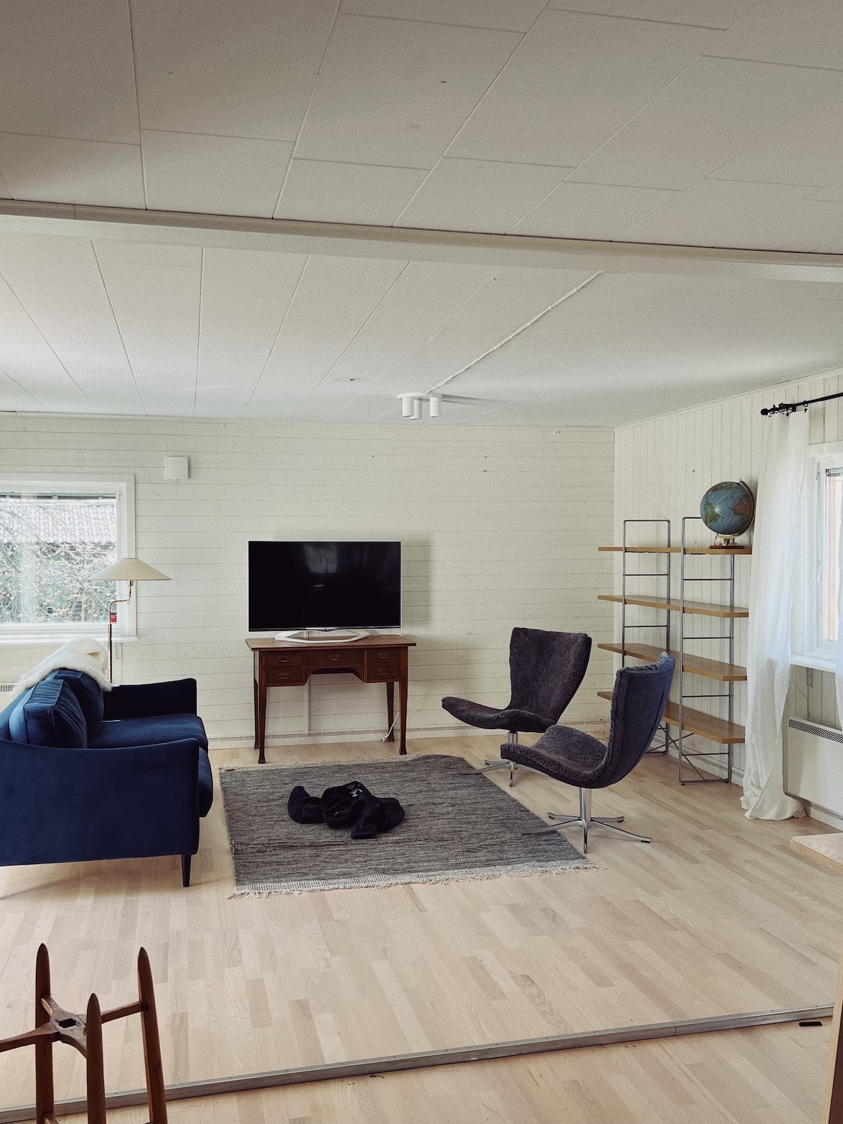 One bedroom downstairs w double bed and new added attic bedroom with one double bed and one bed that also functions as a sofa. Outdoor space with unobstructed sea view and outdoor furniture. From the apartment you can view the sea and walk about 100 meters down to the ocean. 5 minutes away walking by the ocean you get the beautiful sandy beach of Ranarpsstrand, which also hosts a tennis field and a pool.