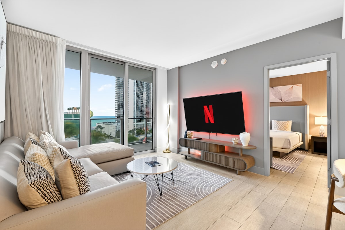 ✨¡Te damos la bienvenida a nuestro ático recién actualizado, uno de los mejores de Miami, con las mejores reseñas de huéspedes felices! Disfruta de impresionantes vistas en Beachwalk Resort desde esta verdadera unidad de lujo de 3 dormitorios / 3 baños con techos altos, ubicada en el piso superior. Situado en la exclusiva torre de los propietarios VIP, el ascensor se abre directamente a tu vestíbulo privado. Tendrás acceso a todos los servicios del hotel y un servicio de traslado gratuito a la playa. ⚠️Asegúrate de leer y aceptar todos los detalles en “Otras cosas a tener en cuenta”⚠️