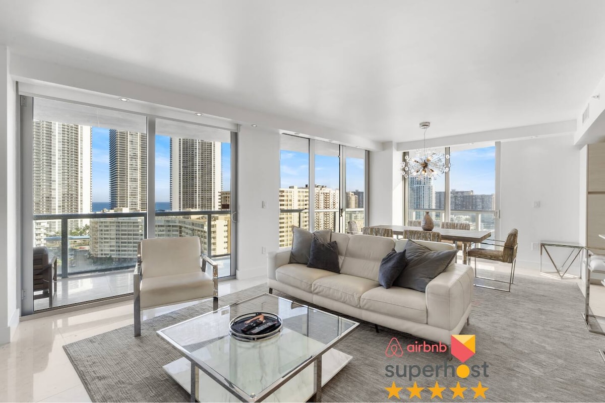 Condominio frente al mar en Hollywood, Florida, en el piso 38 con vistas panorámicas al Océano Atlántico y al Canal Intracostero. Ubicado en Ocean Drive, cerca de las atracciones de Miami y Fort Lauderdale, esta lujosa estancia es perfecta para parejas, familias y nómadas digitales. Disfrute de piscinas, gimnasio, spa y servicio de playa privada. Relájese en su amplio balcón y disfrute de lo mejor de la costa de Florida. ¡Reserve hoy mismo su escapada a Hollywood, FL! 🌊✨
