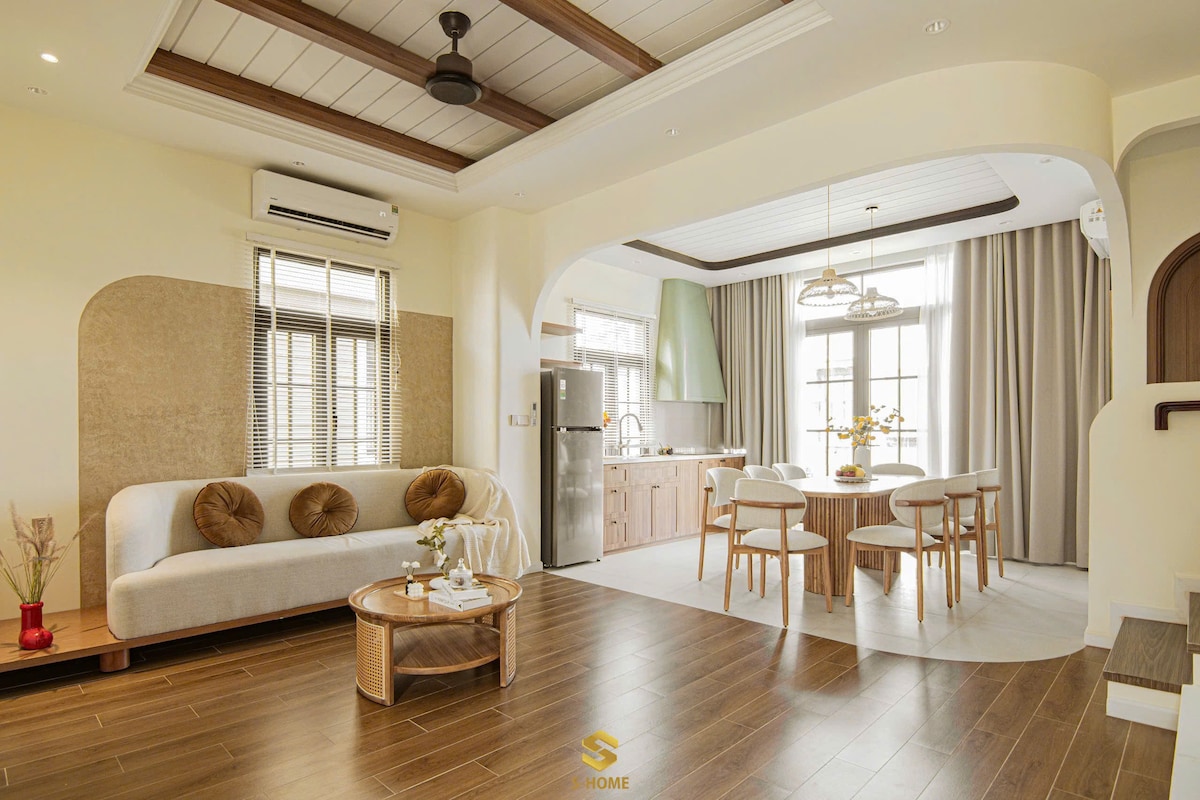 Seajoy Villa – Biệt thự nghỉ dưỡng đẳng cấp, chỉ vài phút tản bộ ra biển. Không gian tinh tế kết hợp phong cách Á – Âu, nội thất gỗ ấm áp và cửa sổ lớn tràn ngập ánh sáng. Gồm 4 phòng ngủ rộng rãi, gác mái sáng tạo cho trẻ em hoặc góc thư giãn, phòng khách cao thoáng với bàn ăn dài cho gia đình & bạn bè. Sân vườn xanh mát, hàng rào trắng thơ mộng cùng tiểu cảnh Zen thanh tịnh. Vị trí yên tĩnh nhưng gần khu vui chơi, mang đến kỳ nghỉ riêng tư, sang trọng và trọn vẹn.