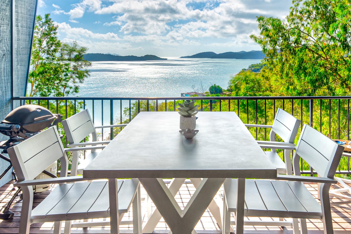 Rompe con tu día a día y relájate en este tranquilo refugio isleño. Apartamento moderno de 1 dormitorio totalmente renovado (agosto de 2023) y totalmente independiente, perfecto para parejas con vistas al Pasaje de Whitsunday. ¡Las puestas de sol son espectaculares! Dormitorio: cama tamaño king y 2 balcones. Cocina moderna y lavandería a estrenar. Cómodo salón con sillón reclinable eléctrico de 3 plazas con TV y suscripción a Netflix, lo que hace que las noches sean un momento para relajarse y desconectar. Barbacoa, comedor y tumbonas en el balcón te atraen a un paraíso tropical.
