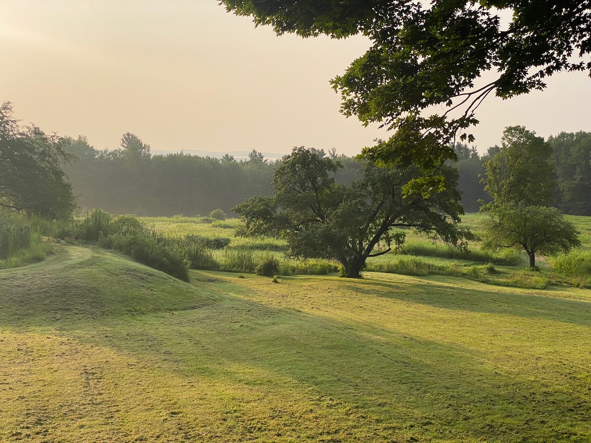 Casa aislada Berkshire rodeado de 10.000 acres de bosque es con senderos marcados & estanque que duerme hasta 10 personas cómodamente. Aire acondicionado y calefacción central, chimenea, barbacoa, fibra WiFi gigabit internet, dispositivo de streaming de Roku con Netflix y Amazon Prime y cientos más canales, gazebo, estanque privado, 2 baños, secadora de ropa nueva, sofás en forma de C de 16 pies, aparcamiento en el garaje interior, huertos, kayaks y mucho más.
