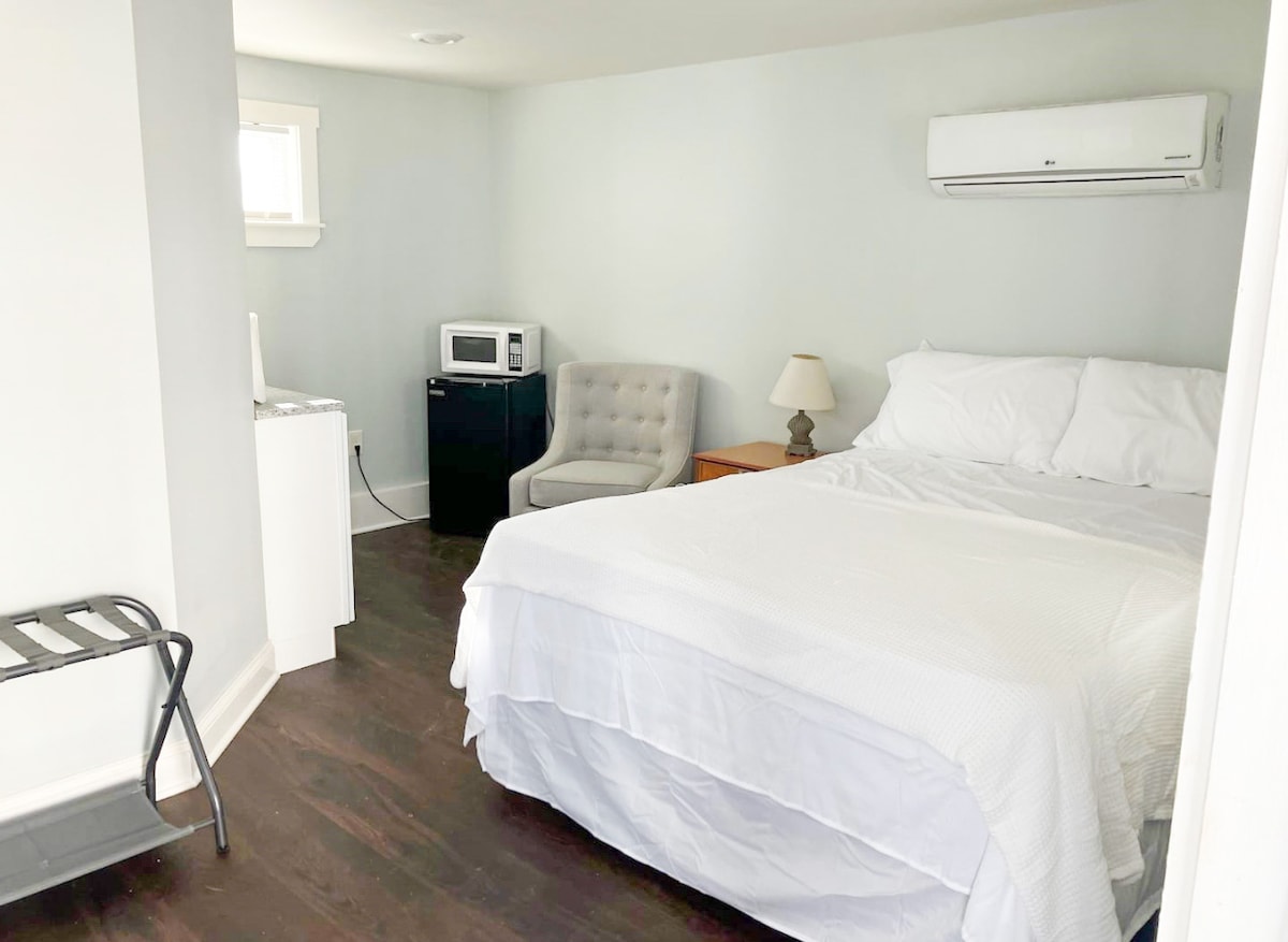 Stay like a local in this Queen Studio Suite. Located on the first floor, Room 7 is set up like a sun filled studio apartment featuring a well-appointed kitchen and sitting area. Call this room home while you also enjoy daily housekeeping and amenities that include an en suite bathroom with walk-in shower, Bigelow bath products, Matouk Linens, plush pillow-top mattress, hypoallergenic down bedding, Bluetooth clock radio with charging station, in-room climate control, Wifi and cable TV.