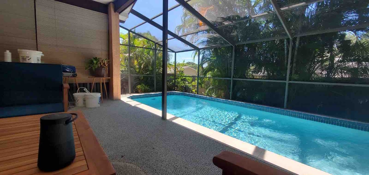 ¡Desconecta y relájate mientras te hospedas en nuestro nido floridano recién renovado! Imagina que estás perdido en nuestro jardín tropical mientras buceas en la piscina, tómate un tiempo para ti mismo en el patio cubierto frente al agua azul y el verde vivo de las palmeras. ¡Simplemente respira, tu comida favorita huele bien en la parrilla y tu familia está disfrutando de la gran televisión en el cómodo espacio abierto con techos altos! Disfruta del mar, estás a 5 minutos en coche de la playa y cerca de todo. ¡Se siente bien!
