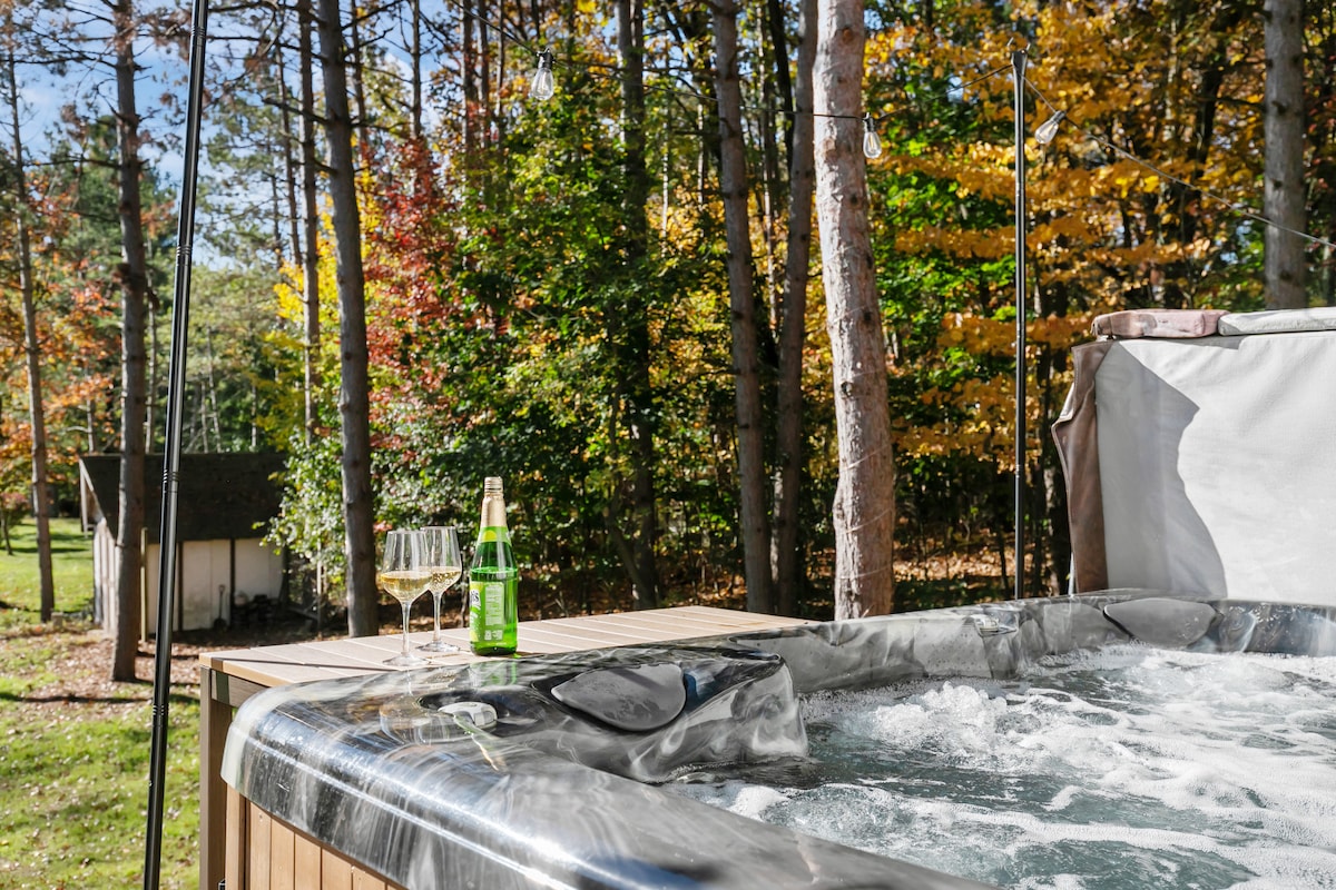 Looking for a peaceful retreat? Experience 5 acres of tranquil, private woodland paradise. Cool nights are perfect for warming up in the hot tub or infrared sauna which overlook the meadow. Explore hiking trails and lakes that the scenic Kettle Moraine has to offer. Grill a delicious meal and later craft perfect s’mores by campfire as the crickets sing. Unwind at SoLu winery, just a minute down the road. Near Road America, Kettle Moraine State Forest, and Dundee. Your getaway awaits!