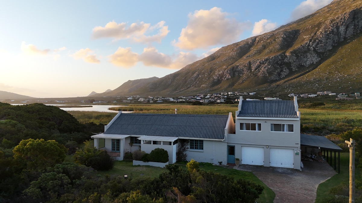 Bienvenido a nuestra encantadora casa de campo con los sonidos del pequeño río, las ranas y el océano de fondo. Betty's Bay es muy conocida por su naturaleza virgen, montaña, fynbos, playas, lagos y magníficos pingüinos africanos (burros). Los pingüinos están a poca distancia a pie. El famoso jardín botánico Harold Porter está a 5 minutos en coche. Betty's Bay tiene infinitas oportunidades para practicar senderismo, surf, pesca con caña y esnórquel. A unos 700 metros de la casa hay una tienda de comestibles local.