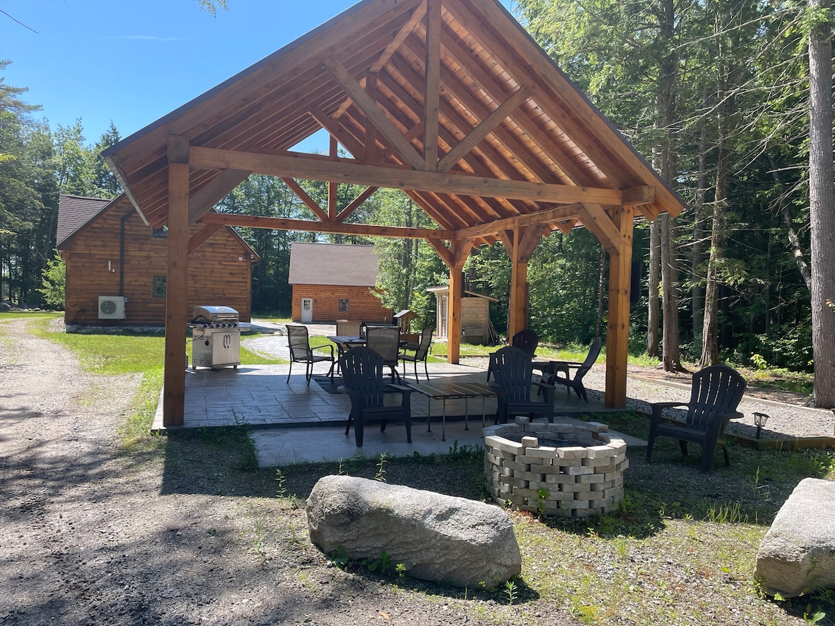 Nestled in the woods and on Adams Pond with new wood fired sauna! The cabin feels totally hidden away but is less than 10 minutes to Bridgton and Naples, hiking, beaches and restaurants. The woods are beautiful and peaceful and the pond is just down a mossy path. Great for couples or a weekend away. Large deck with grill and outdoor shower, firepit. There is a shared dock on the pond for swimming, fishing, or just enjoying the view as well as a canoe and 2 kayaks, and a paddle board.