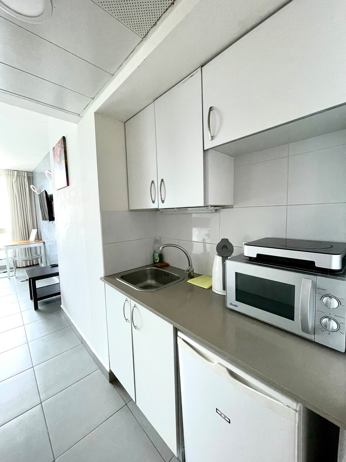 REFUGIO (MAMAD) DENTRO DEL DEPARTAMENTO Hermosos departamentos de 2 ambientes, completamente amueblados y modernos, perfectos para 2 o 3 personas, en un edificio nuevo con seguridad las 24 horas, los 7 días de la semana, con pileta y un gimnasio. A 5 minutos a pie de la playa sur de Netanya. No se permite fumar en el departamento.