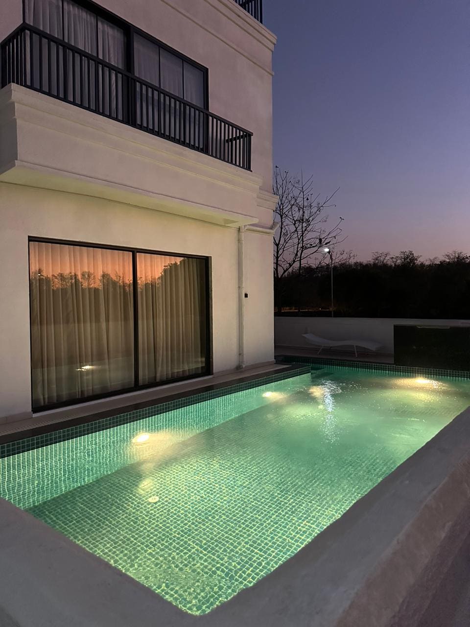 Experience a serene retreat, a picturesque 3-BR 4-Bath farmhouse in Nasrapur, Karjat. This haven, adorned by lush greenery, features a pool, a flowing river & featured in Hotelier India. Crafted with love, the rustic design offers spacious, open areas, inviting a sense of freedom & communion with nature—an ideal escape for a city detox. It stands out for commitment to environmental sustainability. This villa can sleep 15 guests overnight & 30 guests for the day making it ideal for parties.