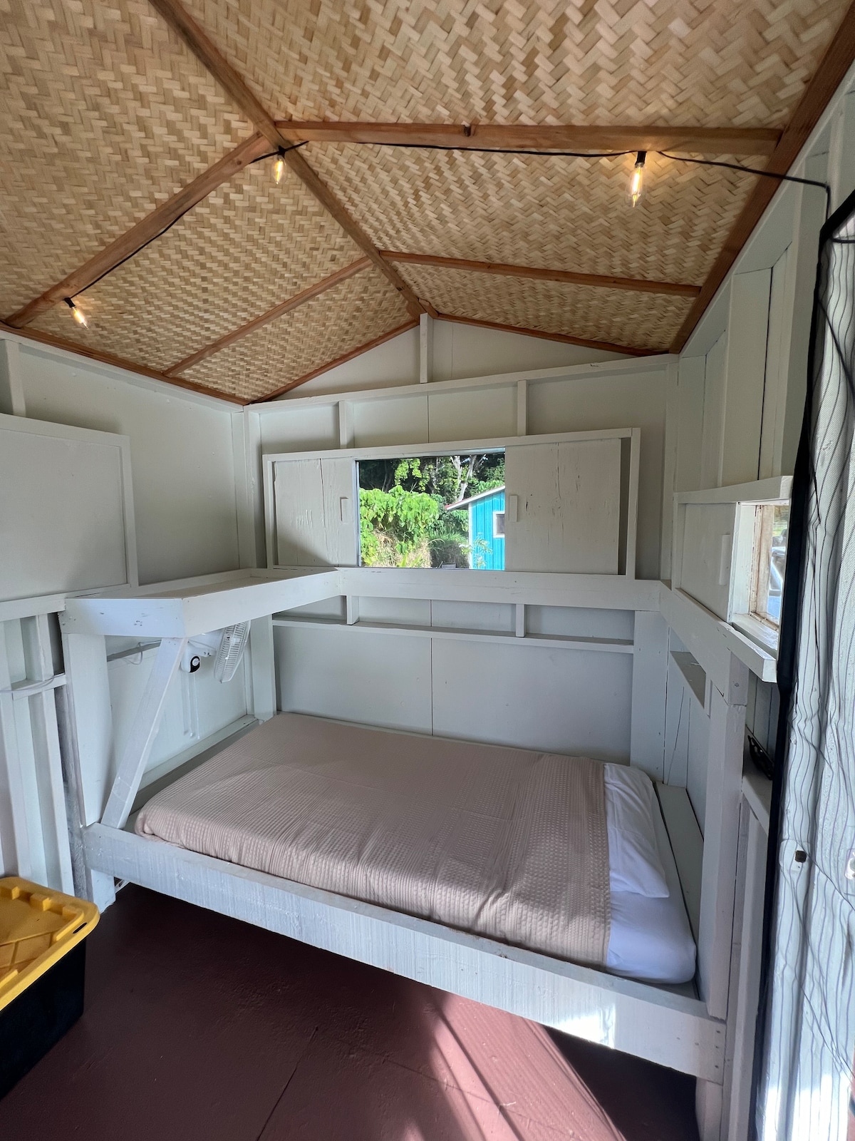 Cabaña 🗺️ con vista a la montaña•Caminá hasta la playa•Campamento para excursionistas 🏕️Esta cabaña fuera de la red tiene capacidad para 1–2 personas y está ubicada en la pintoresca costa norte de Oʻahu, a poca distancia a pie (<1 milla) de la playa y a minutos del Centro Cultural Polinesio. Disfrutá de las exuberantes vistas a las montañas y de los senderos cercanos para hacer caminatas ⚠️NOTA: No se trata de un resort de lujo, sino de una experiencia en la naturaleza. Es probable que haya insectos, gecos y alguna tormenta. Ideal para viajeros que buscan naturaleza, simplicidad y aventura