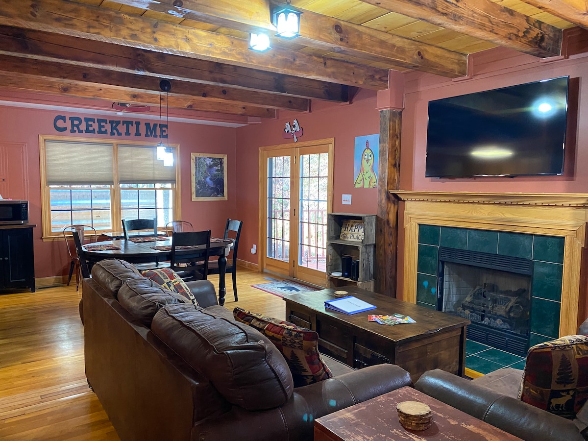 Cabaña CreekTime: jacuzzi, arroyo, ¡juegos de arcade!