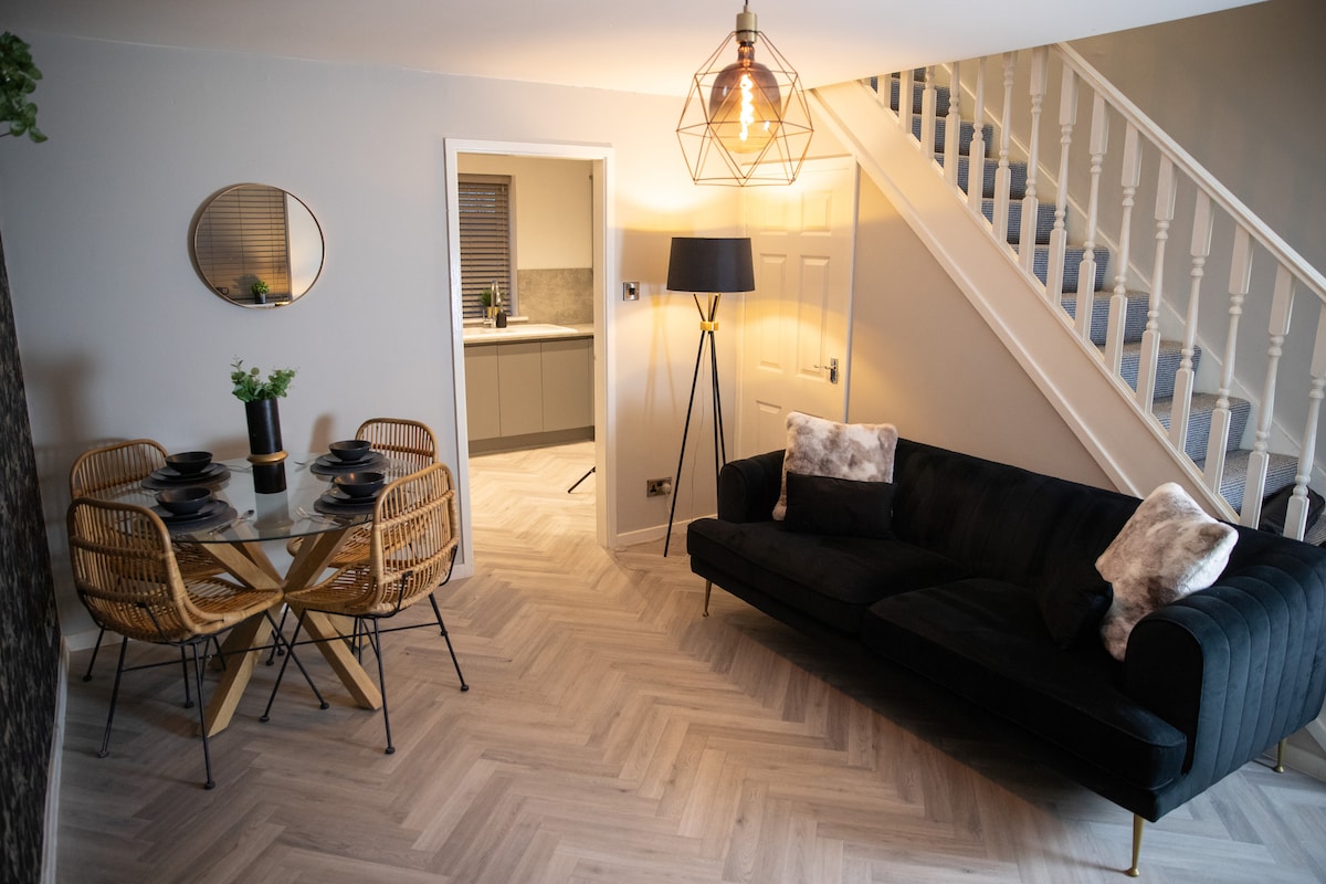 Este alojamiento con estilo es perfecto para una familia pequeña o dos parejas que comparten, ya que ofrece el espacio de dos camas dobles grandes y la privacidad de su propio baño. Situado en la frondosa Moortown, un pequeño barrio periférico de North Leeds, a solo 4 millas del centro de la ciudad de Leeds, es el lugar perfecto si quieres combinar una escapada a la ciudad con un retiro al campo, con Harrogate, Ilkley y los páramos de North Yorkshire a la vuelta de la esquina.