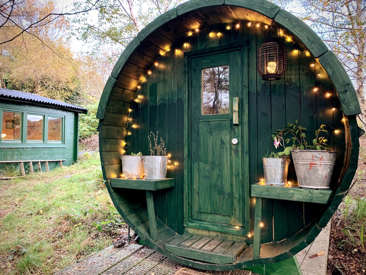 *️ Los huéspedes deben tener en cuenta lo siguiente: 📌 Es difícil bajar a la isla y a la pasarela flotante Inodoro y ducha📌 separados (ver fotos) 📌 Calefacción limitada en los meses de invierno Recomendado en Rough Guide, Observer y The Times Travel, nuestro Cabin and Barrel es un excelente espacio para que las parejas disfruten de nuestro mágico rincón de las Tierras Altas de Escocia aquí en nuestra histórica isla de propiedad familiar.