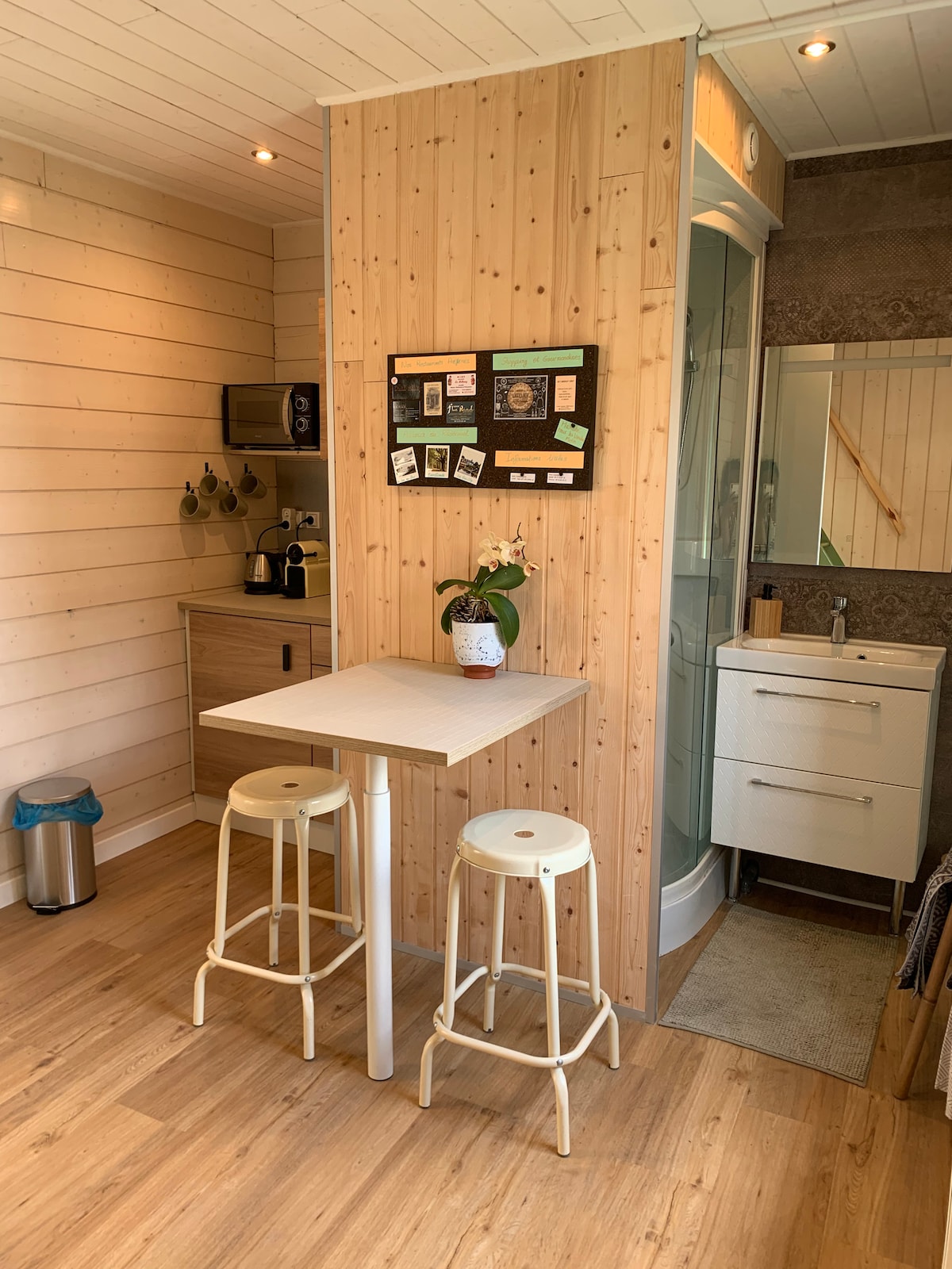 Gran estudio de planta baja con un ambiente natural y refinado situado en el centro de un pueblo tranquilo. El alojamiento dispone de todas las comodidades necesarias cocina y baño equipado, así como una zona de estar ( cama banqueta ) y una cama fija para dos personas. En el exterior, el lugar dispone de una terraza de madera, así como de un aparcamiento privado. Ideal para una, dos o tres personas.