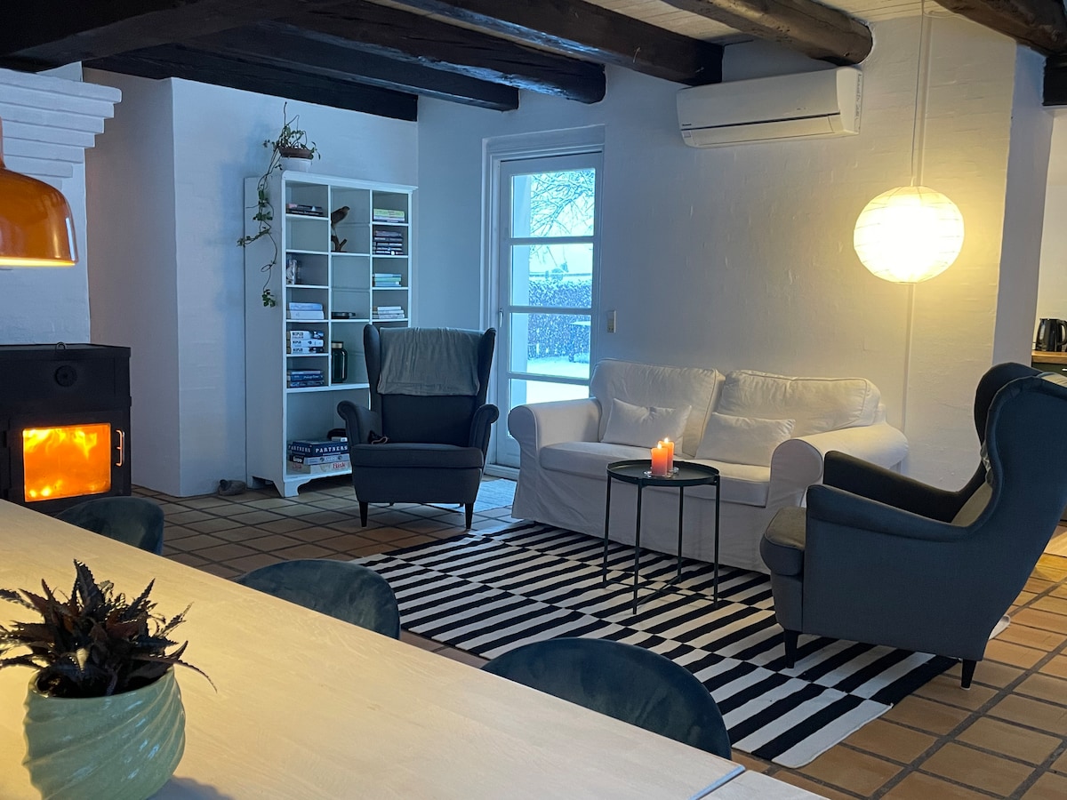 Casa de verano del arquitecto danés Søren Cock-Clausen. Suavemente restaurado. Amueblado con lo mejor del diseño danés de la época. El jardín es enorme, privado y ofrece unas vistas espectaculares de los campos. El sol a cualquier hora del día. Columpios y una caja de arena para los niños. Dos anexos; una encantadora casa de madera con baño al aire libre, pequeña cocina y comedor, y una pequeña cabaña. Nuestra casa es perfecta para familias que aprecian el diseño, la naturaleza y la privacidad. El lugar tiene espacio para 10, pero también es genial para 4.