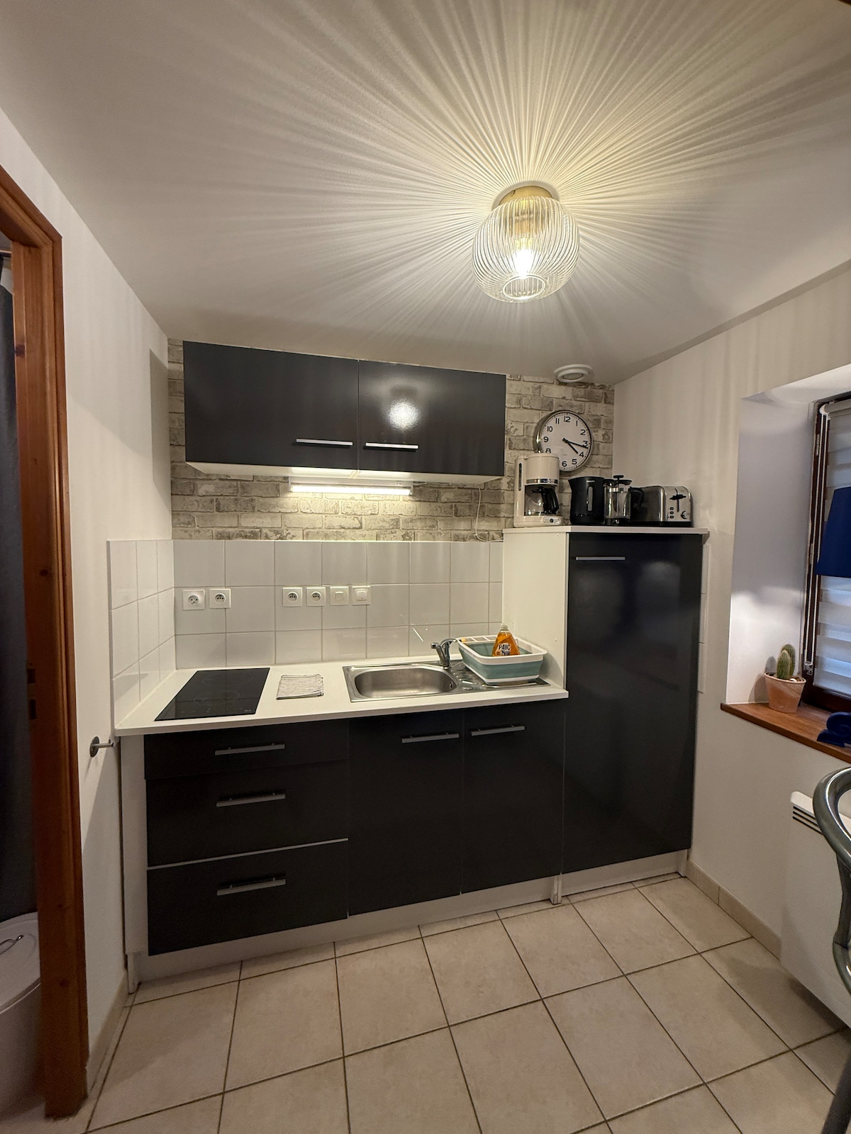Encantador estudio de 25 m2 muy luminoso y tranquilo con terraza orientada al sur. Todo confort para 2/3 personas. Totalmente equipado (ropa de cama incluida, wifi, ducha a ras de suelo, lavabo, cocina, nevera-congelador, microondas, cafetera, lavadora, muebles de jardín y aparcamiento privado). Ubicación ideal para descubrir Caen, las playas del desembarco (15 minutos) y los alrededores. Posibilidad de ir en transporte público desde la casa. Comercios a 500 m. Acceso seguro para llegar fuera de los horarios tradicionales.