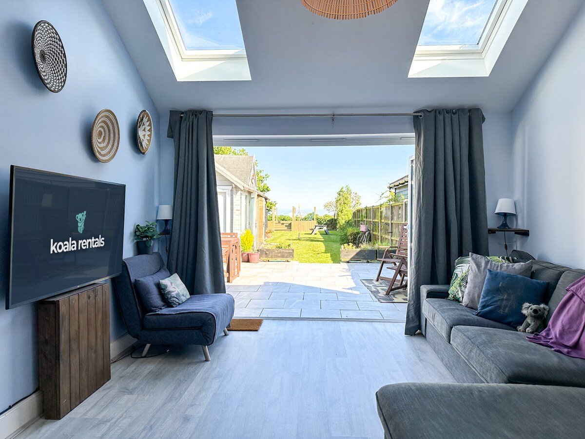 Esta encantadora casa de vacaciones independiente (2 dormitorios, 1 baño, salón/comedor) te ofrece a ti y a tu familia una experiencia de lujo en un entorno tranquilo, cerca de muchas atracciones locales. Alfombras gruesas, ducha eléctrica, toallas blancas suaves, camas extra anchas, sábanas de percal 100 % algodón, una cocina totalmente equipada y desayuno continental, todo lo que lo convierte en un hogar especial. Una cuna de viaje con ropa de cama, trona, bañera para bebés y zona de juegos para niños están disponibles de forma gratuita. Smart TV y wifi incluidos.