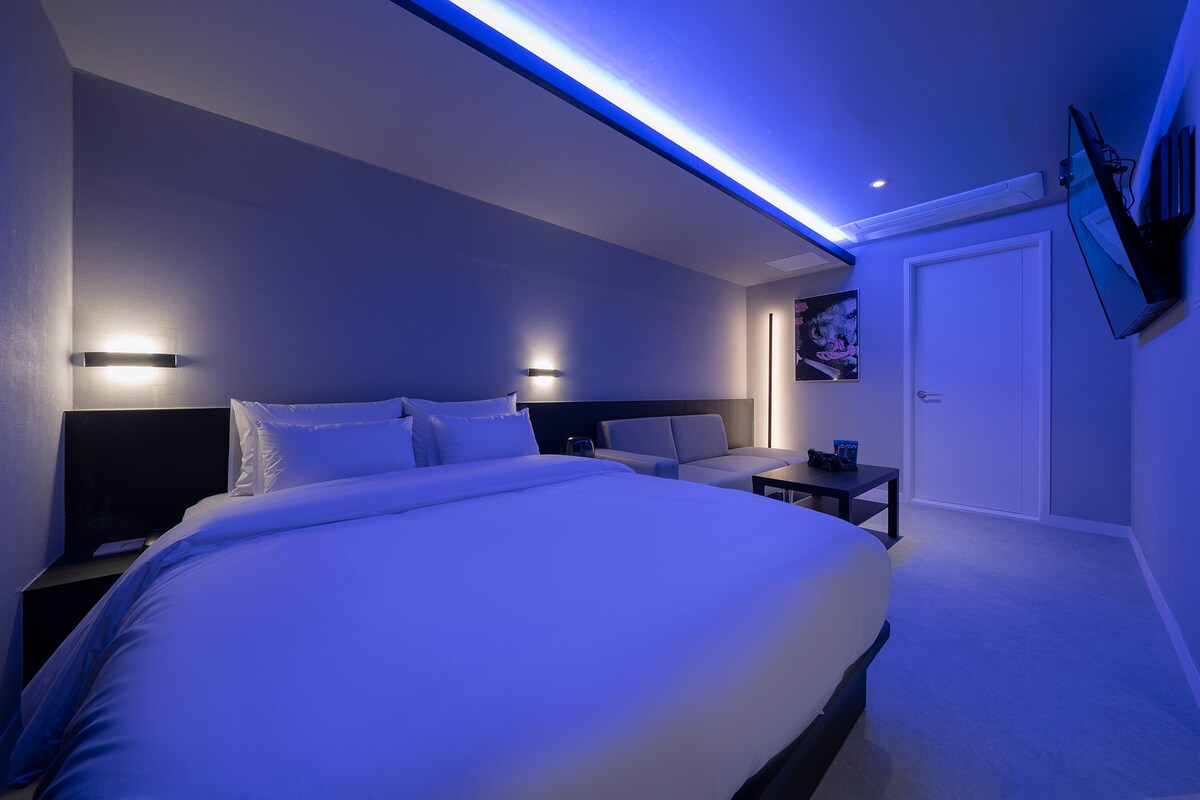 [감성숙소 오픈특가] 뚜쥬루 4분/터미널 5분/신축/보드게임/TV/빔프/넷플 /호텔 침구