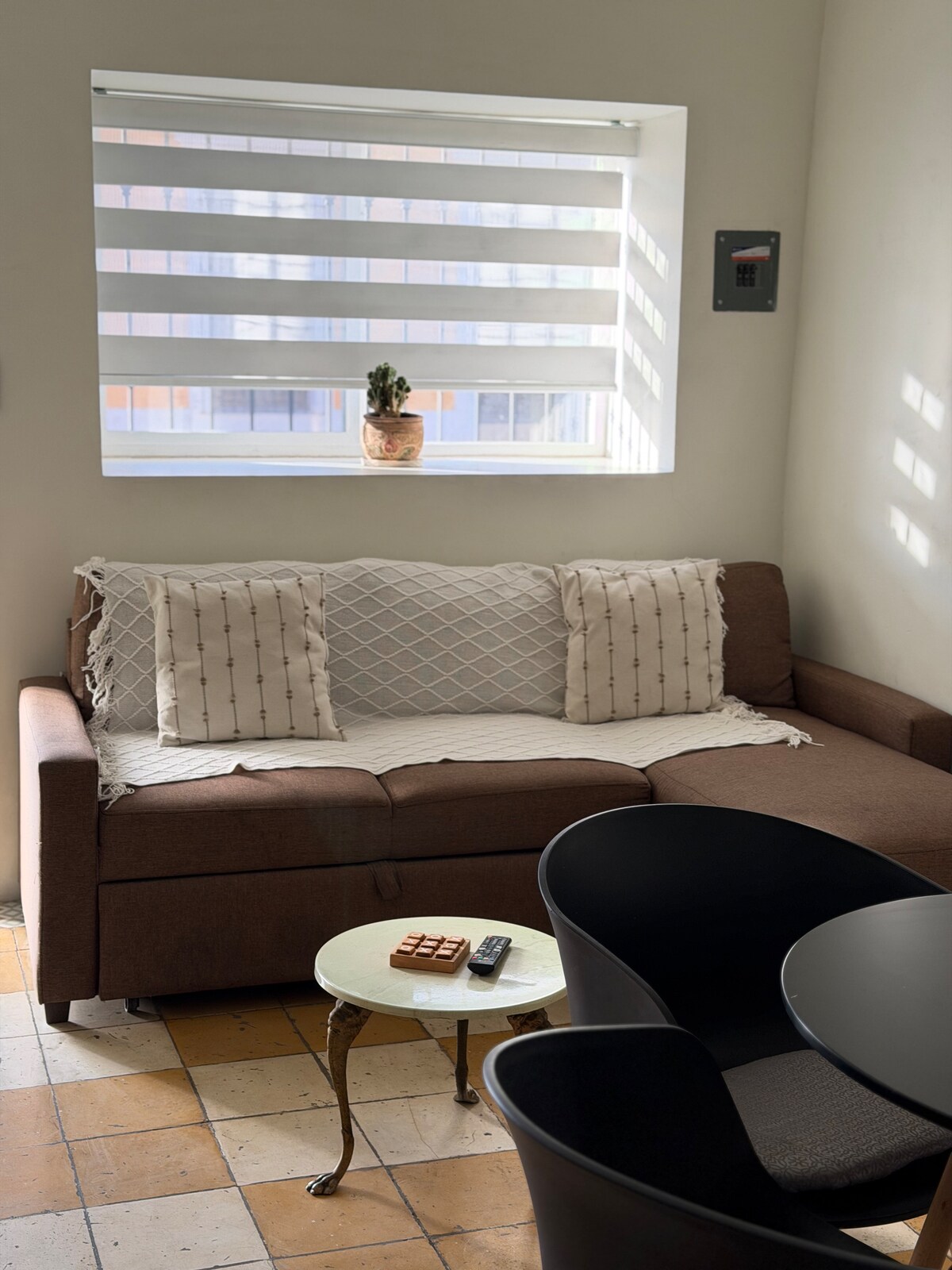 Departamento tipo estudio acogedor, privado y tranquilo, ideal para aquellos que buscan un refugio en la ciudad. Con una distribución abierta y luminosa, este espacio cuenta con todo lo necesario para una estancia cómoda y relajante. Es perfecto para aquellos que buscan un lugar tranquilo y acogedor para descansar, trabajar o simplemente disfrutar de un momento de soledad. ¡Ven y haz de este lugar tu hogar lejos de casa!"