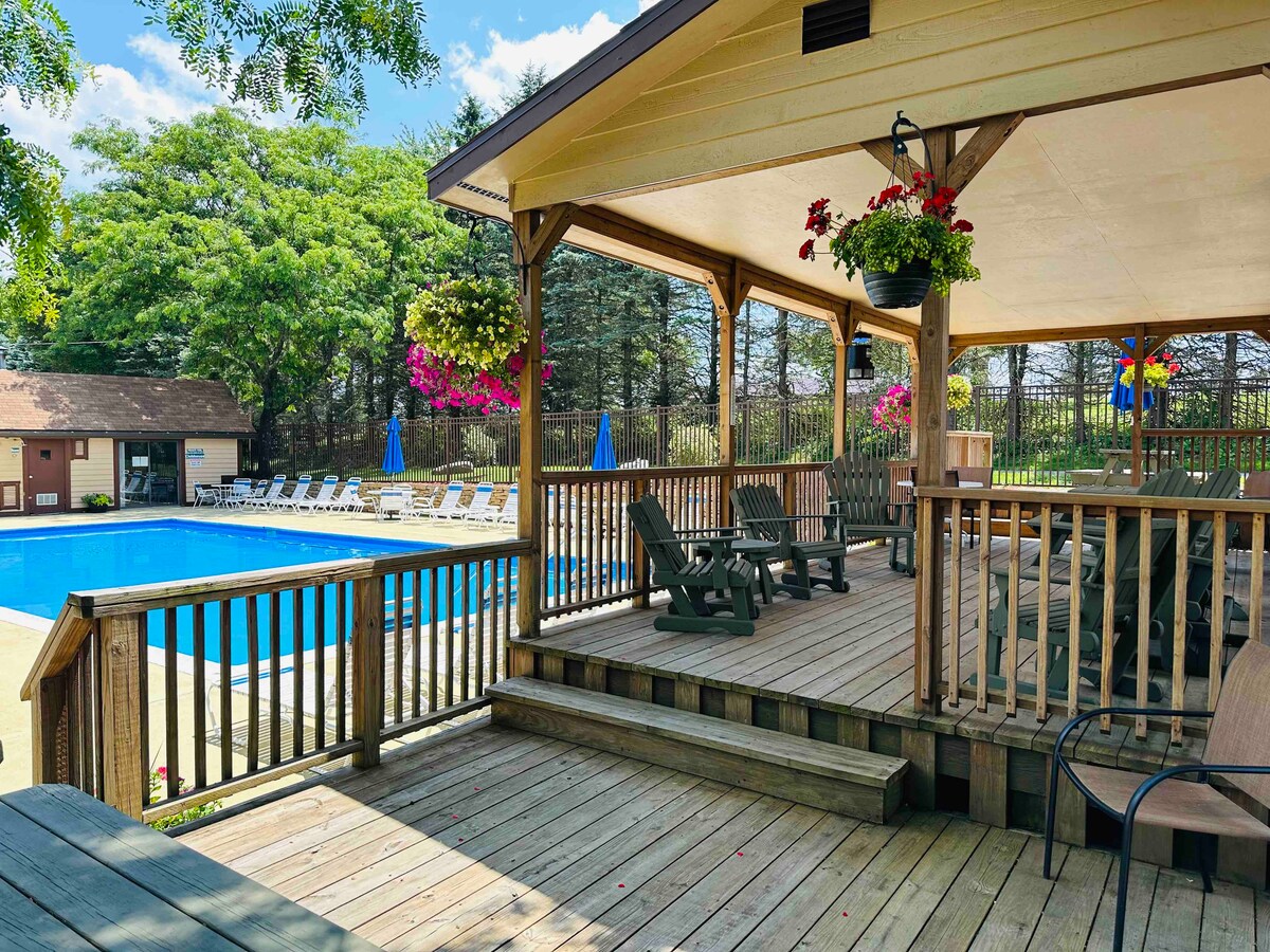 Apartamento de 2 dormitorios en Swiss Mountain, bellamente renovado, con capacidad para 6 personas y dos baños completos. El flujo abierto de la sala de estar a la cocina es el lugar perfecto para relajarse después de un largo día. Ubicado en las montañas, este apartamento te hace sentir como si estuvieras en un bosque con servicios de centro vacacional justo al final de la carretera. ¡El servicio de transporte 24/7 desde y hacia el Seven Springs Mountain Resort ofrece diversión las 24 horas del día para toda la familia! ¡El acceso a la piscina durante los meses de verano hace que esta sea una escapada durante todo el año!