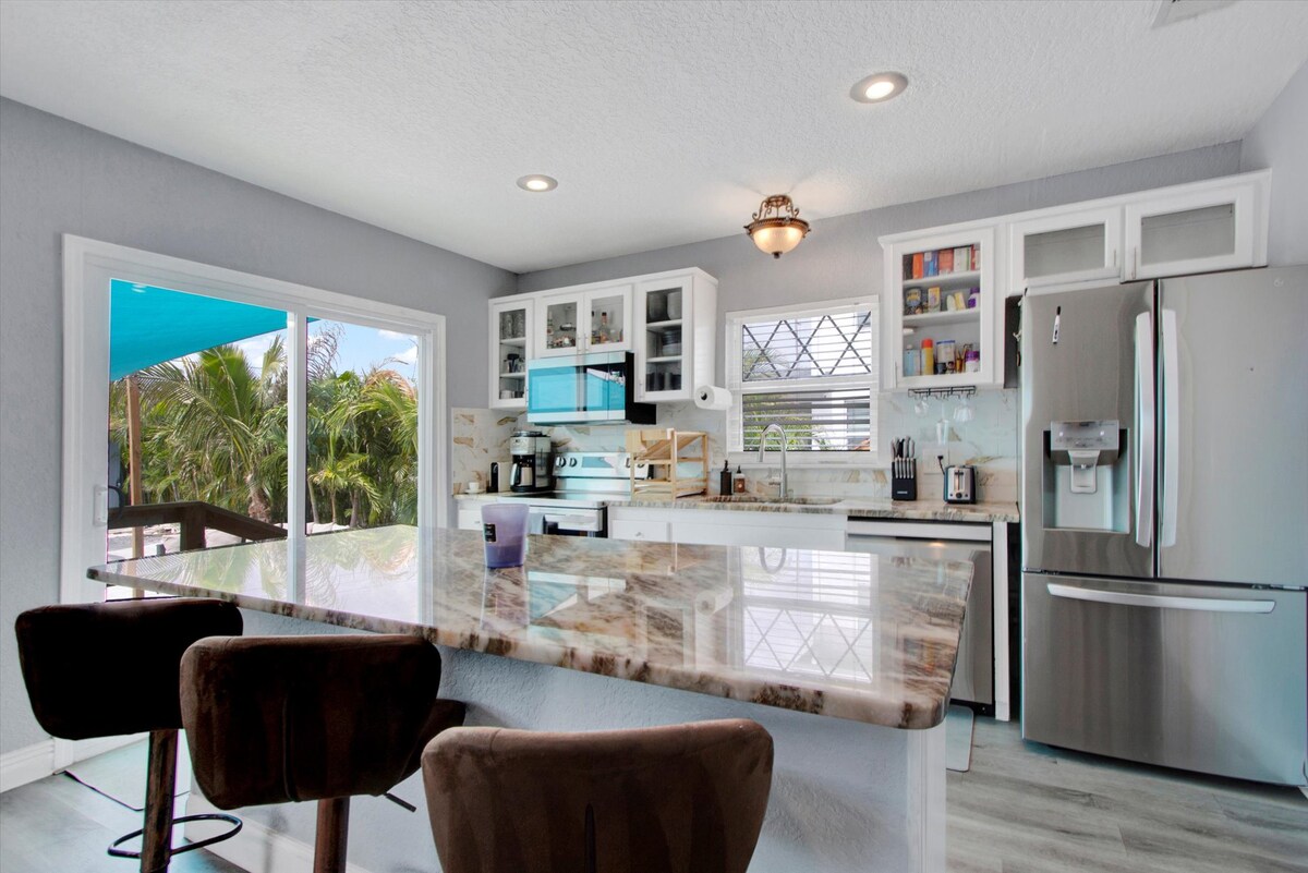 Te doy la bienvenida a Seminole Shores Villa, ¡tu oasis tropical de 223 m²! Esta propiedad es un alojamiento de 4 dormitorios con un montón de servicios para que disfrutes de una estadía inolvidable. Aunque las playas están cerca (<5 min), es posible que no quieras salir de la piscina climatizada de agua salada ubicada en un enorme patio trasero tipo spa, que ofrece mucha privacidad y actividades. Esta casa se renovó por completo en 2023 para incorporar un diseño tropical. Priorizamos un entorno limpio y seguro como parte de tu experiencia.