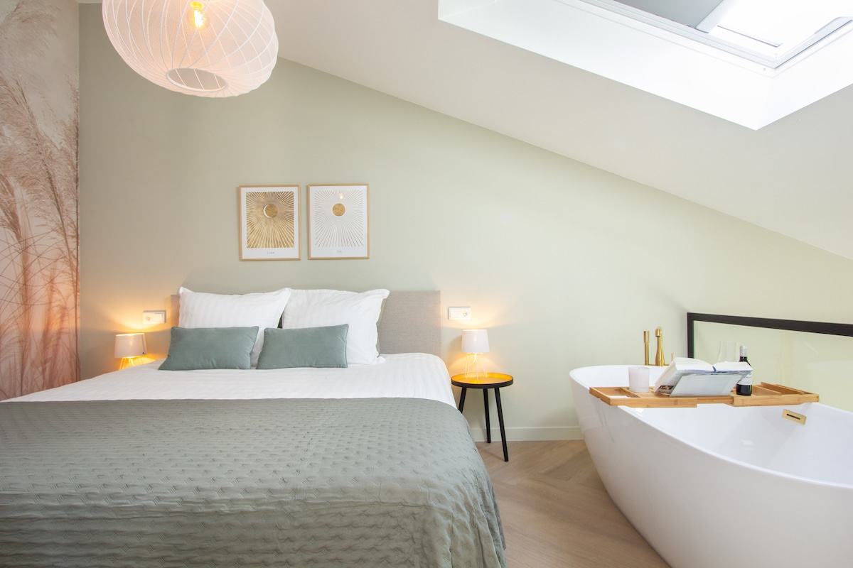Appartement Goud dankt zijn naam aan de gouden details die door het appartement heen te vinden zijn. De inrichting wordt gecomplementeerd door gouden accenten, die een gevoel van glamour en elegantie toevoegen aan het appartement. De keuken is voorzien van alle benodigdheden om uitgebreid te kunnen koken, zoals een combi-magnetron, inductiekookplaat, koelkast met vriesvak én uiteraard een vaatwasser. Daarnaast beschikt dit appartement over een ruime badkamer met uiteraard gouden details.