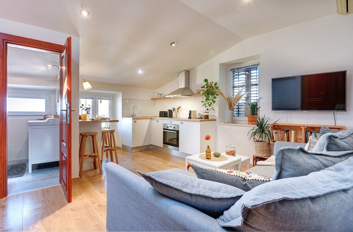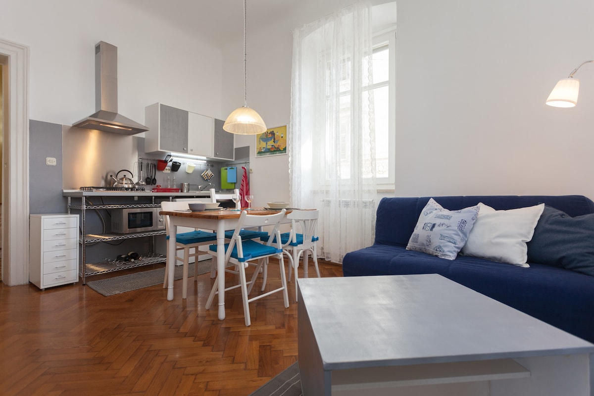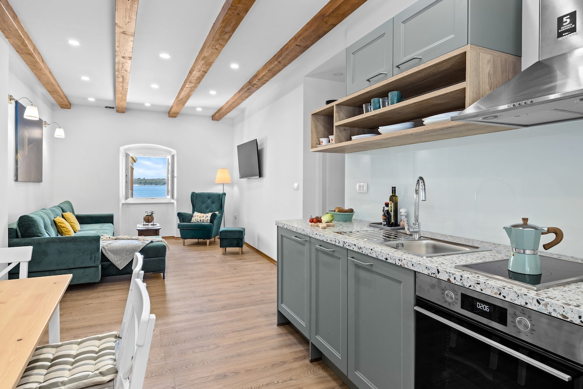 Disfrutá de la elegante decoración de un departamento en el corazón del centro de la ciudad. El departamento es ideal para 2 personas y consta de una sala de estar, cocina y comedor, dormitorio, baño y una pequeña terraza cerrada. Se encuentra en el primer piso de una de las calles más famosas de Pula, la calle Kandler. Equipado para unas vacaciones ideales y para disfrutar de tus merecidas vacaciones.