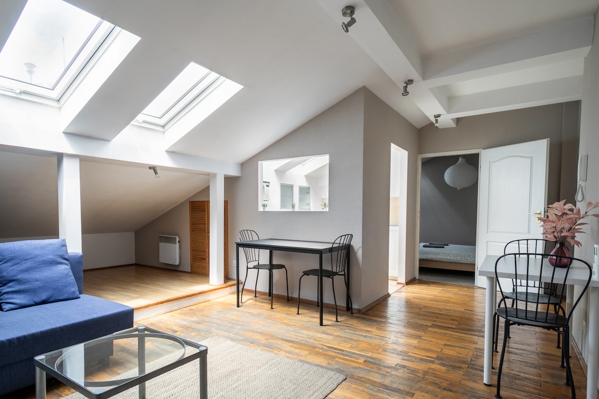 Nuestro inmaculado y espacioso loft se encuentra en el corazón del casco antiguo de Cracovia, en la parte superior de una casa adosada tradicional del siglo XV. Es un elegante apartamento tipo estudio con un deslumbrante espacio en el entresuelo. Situado en el centro de la bulliciosa ciudad, una vez dentro del apartamento estarás en paz, frente a un tranquilo patio con vistas a las copas de los árboles y las campanas de la iglesia sonando a lo lejos. Tu estancia en este encantador lugar de Cracovia creará recuerdos que brillarán en los próximos años.