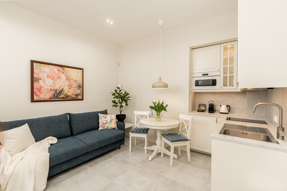 A cozy, renovated apartment located in a beautifully restored 19th-century building in the very heart of Kraków. Just 50 meters from Floriańska Street and only a 2-minute walk to the Main Market Square — you’ll be surrounded by charming cafés, restaurants, historic landmarks and the city’s lively atmosphere, yet the apartment itself remains a comfortable place to relax after sightseeing. Air-conditioned apartment