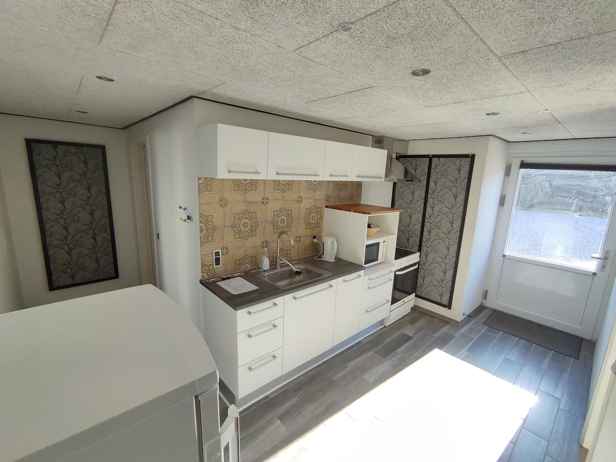 Disfrute de sus vacaciones en una de nuestras 8 hermosas casas pequeñas. Desde la cama doble tiene vistas al fiordo y al idílico puerto de Bjerregård. Puede preparar su propio desayuno en la pequeña cocina con 2 fogones y utensilios de cocina, o puede pedir el desayuno con nosotros (con un coste adicional) Disfrute del amanecer con un café caliente humeante ante la vista de miles de aves migratorias en la reserva de aves Tipperne. Si quieres ir al Mar del Norte, está a solo 15 minutos a pie. La ropa de cama y las toallas están incluidas en el precio.