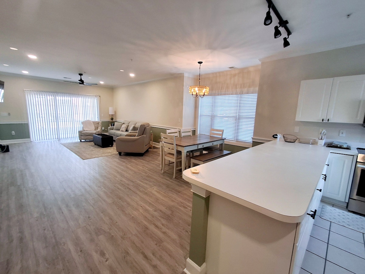 Olvídate de las preocupaciones en este gran alojamiento: ¡es un oasis de tranquilidad! 2 dormitorios principales con duchas privadas de lujo recién instaladas. 1 cama tamaño king, 1 cama tamaño queen y los colchones son nuevos, así como el sofá cama tamaño queen de espuma viscoelástica de la planta baja. Totalmente reformado y decorado en 2022. La zona del patio exterior es tranquila. La playa está a una manzana, así como minigolf, restaurantes y tiendas de playa. Family Kingdom a menos de una milla, el Boardwalk/Skywheel a menos de 2 y Broadway at the Beach a 4 millas.