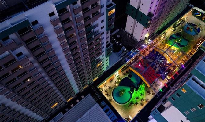 Tiene varias atracciones para niños, biblioteca de juguetes, piscina, tobogán de agua, parque infantil húmedo y, dependiendo de la temporada, hay monitores para sacudir. Para adultos, tiene una piscina infinita con aire acondicionado, cancha de voleibol de arena, baloncesto y minigolf. Ubicado a 1,8 km del parque Thermas dos Laranjais.