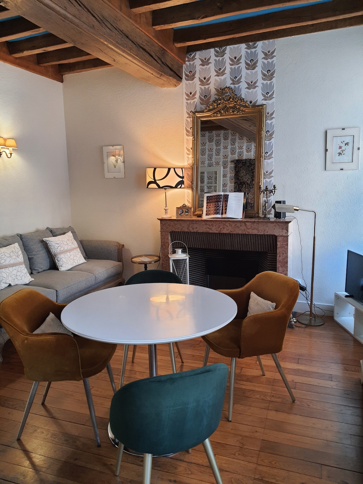 Bienvenido a nuestro encantador apartamento, que estamos orgullosos de decir que tiene un premio de cuatro estrellas de la Junta de Turismo Departamental. Se encuentra en un edificio histórico, dentro de las murallas en el corazón de Beaune, pero en una tranquila calle lateral. Cuenta con salón comedor, cocina independiente totalmente equipada, dormitorio y baño independiente. Luminoso y soleado, con techos altos, una escalera de piedra y un pasillo de mármol, también cuenta con una hermosa «verrière» de cristal con vistas a un patio interior.