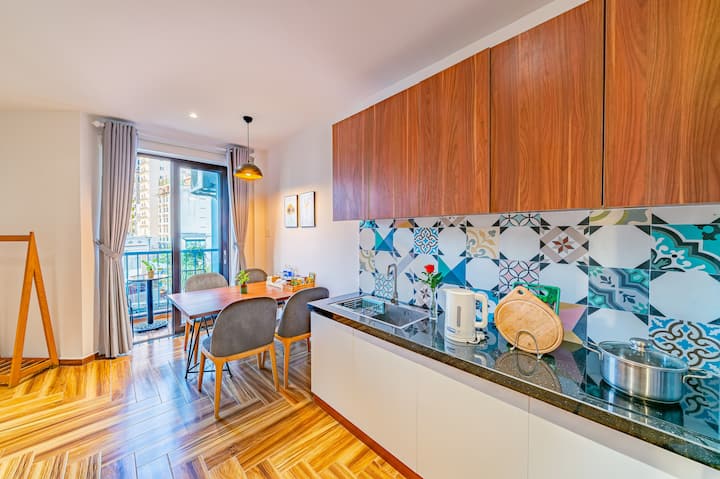 Ropa de cama de lujo y limpia: la limpiamos a diario y las comodidades del hogar de diseño: una hermosa cocina para que cocines tu propia comida, junto con anfitriones amables en los que puedes confiar, te traemos y te mostramos una vista más auténtica de la ciudad de Da Nang.