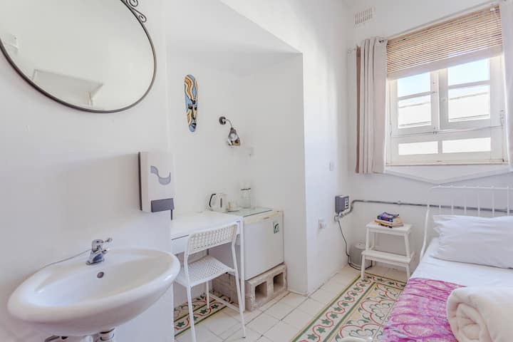 Habitación individual privada con aire acondicionado y baño compartido
