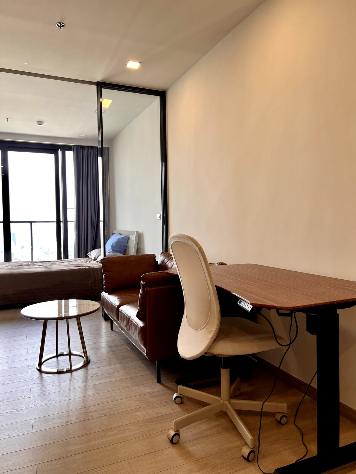 Condominio estilo dúplex con 1 dormitorio, totalmente amueblado con muebles y electrodomésticos, listo para mudarse. Vistas altas, abiertas y cómodas, no bloqueadas por edificios. Vistas de Bangkok con wifi de alta velocidad, TV con Netflix El proyecto es un edificio de uso mixto con un hotel de 4 estrellas, gimnasio, piscina, sauna, masajes y spa, restaurante del hotel, restaurante internacional, cafetería, tienda de conveniencia, peluquería y lavandería. - Electrodomésticos: TV inteligente, lavadora, refrigerador, cocina eléctrica, utensilios de cocina, microondas, hervidor de agua, purificador de aire, calentador de agua