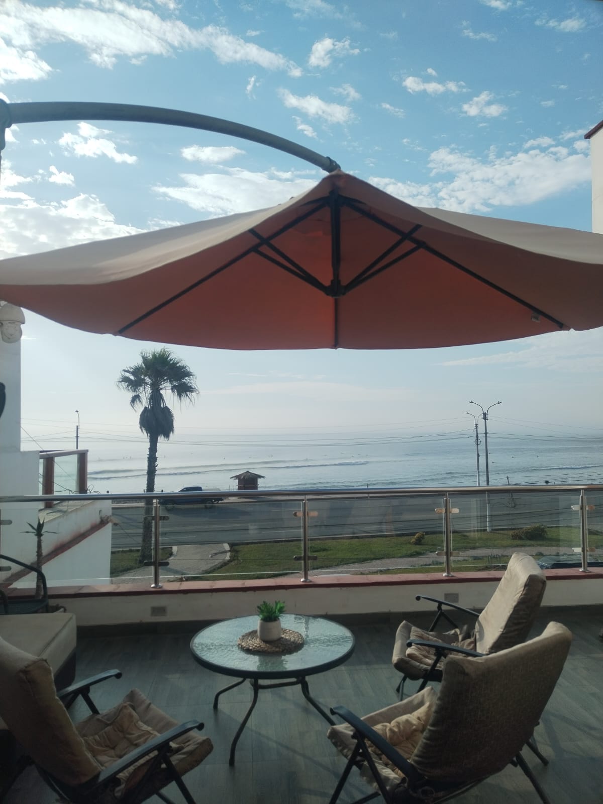 Exclusivo ático frente a la playa, con una espectacular vista panorámica de la bahía de Huanchaco. Disfruta de un vino viendo las maravillosas puestas de sol desde tu balcón. También verás los tradicionales barcos de caña de totora y las olas de surf de esta hermosa costa. Este ático tiene todas las comodidades dignas de un hotel de 5 estrellas, con un jacuzzi privado, donde puedes relajarte mirando al mar, y también estás a pocos pasos de los mejores bares y restaurantes. Ubicado en un acceso al sexto piso solo por escaleras.